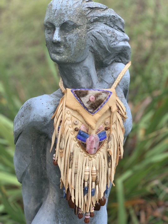 Yara creates custom woven pieces of sacred art—each one crafted in ceremony, in communion with nature, and with the divine creatix of all life. Every bead, stone, and stitch is placed with intention, allowing a unique story to reveal itself through the weaving.
